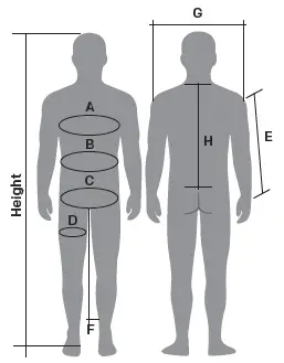 F - Inside leg (cm) | 68-70 | 70-72 | 72-74 | 74-76 | 76-78 | 78-80 | 80-82 | 82-84 | 84-86 | 86-88 | 87-89 | 87-89 |